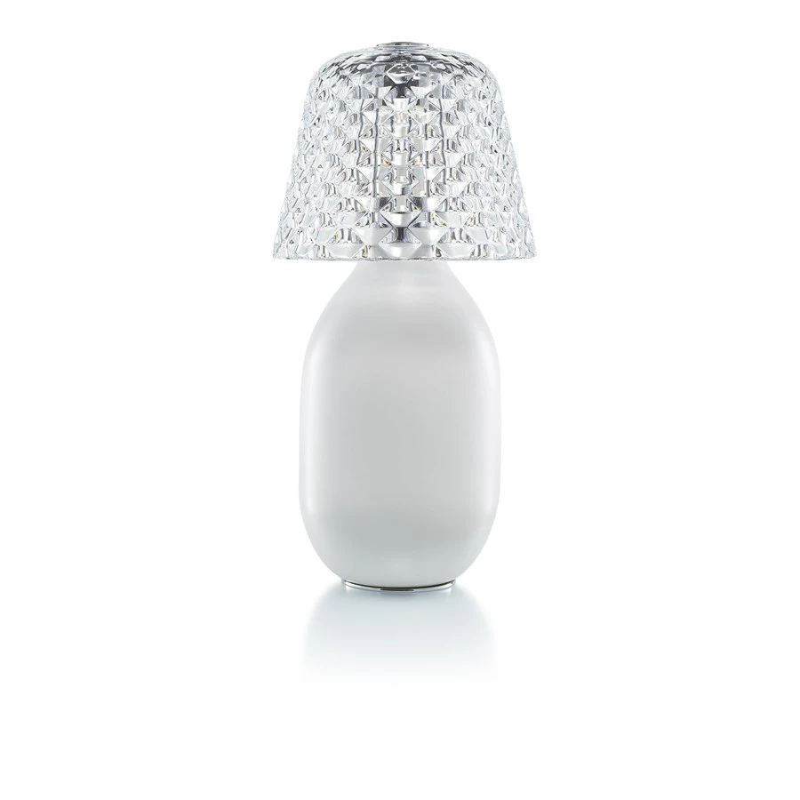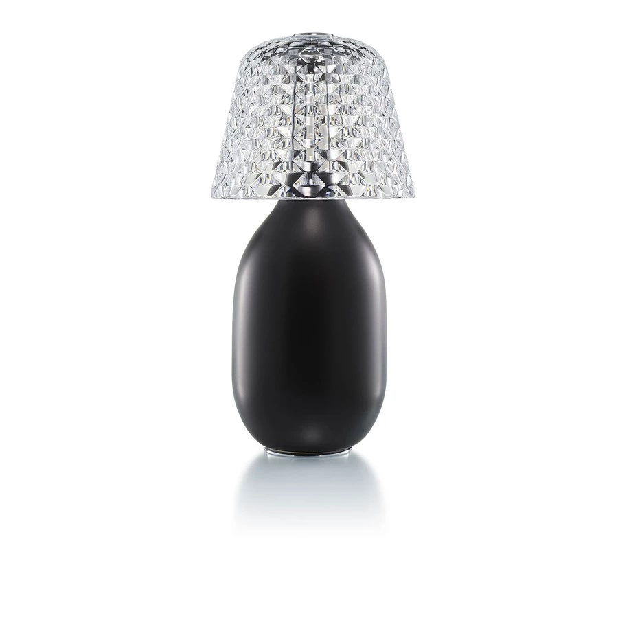 A perfect blend of ceramic and crystal, Baby Candy Light lamp reflects the creator, Jaime Hayon’s, playful world, fed with fancy and humor. The lamps now come in 4 iconic colors: glossy Baccarat red, matte bronze, matte white and matte black. Wireless, this nomadic lamp is an elegant and playful solution to light up and decorate indoor tables as well as terrace tables. Rechargeable, its ceramic body is topped with a crystal shade inspired by the Juvisy-cut motif. A button on the top of the lampshade enables to dim the light by a gentle and continuous touch.