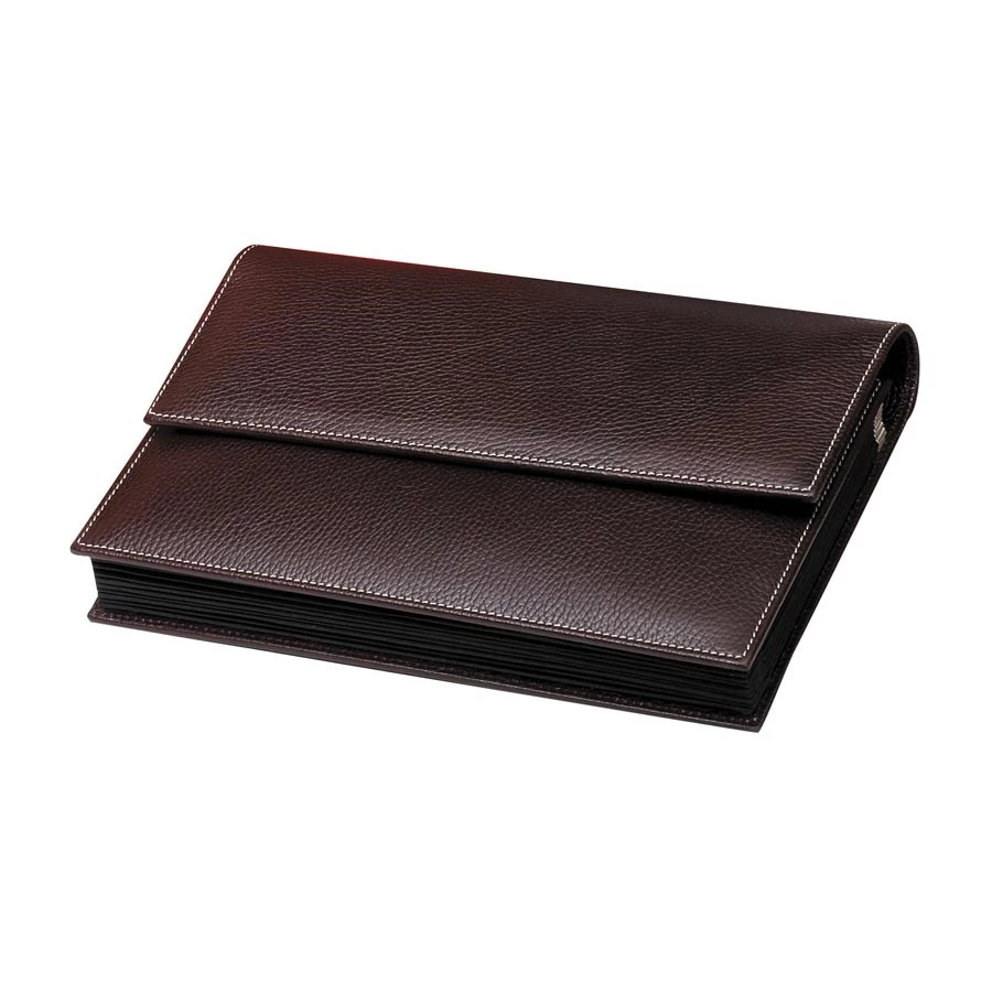 Beautifully grained calfskin in handmade snap-close files with nine expandable slots. Ideal for smaller papers or receipts. Made in Italy. Exclusively at Scully & Scully.