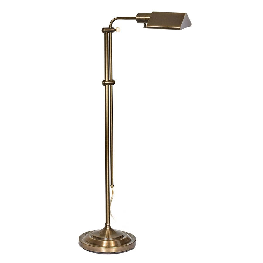 Highly useful solid cast brass floor lamp adjusts in three ways. Height adjusts from 40″ to 56½”. Brass shade rotates a full 360 degrees – it can literally shine straight up. Pole also twists to change light direction without lifting lamp. 20½” x 10″. Accommodates one standard bulb up to 60-watts.