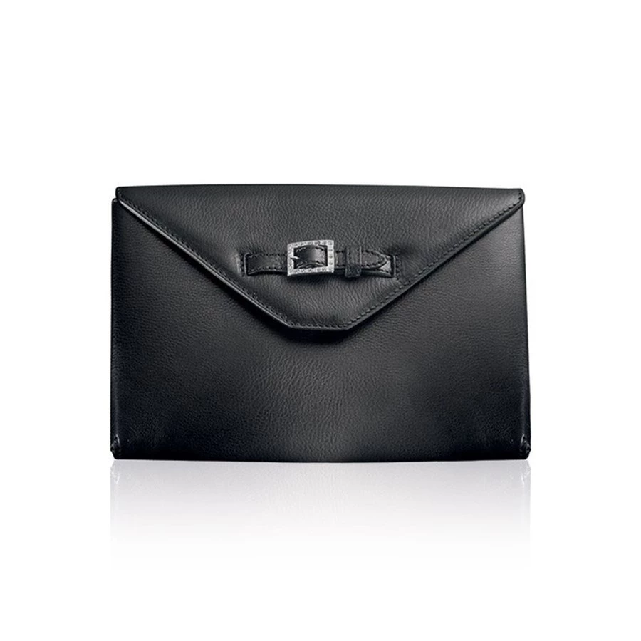 Handcrafted of pebbled black leather, this jewelry purse is ideal for storing jewelry while traveling. Lined entirely with anti-tarnish suede to protect your precious pieces. Handmade in Italy.