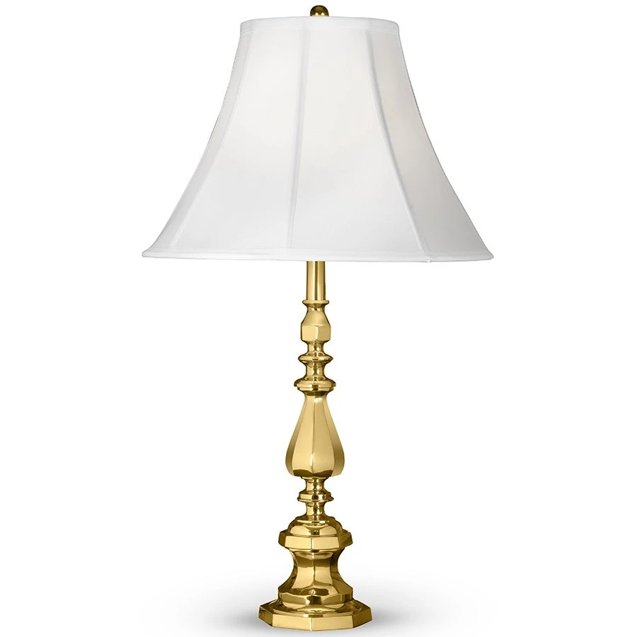 Crafted of solid cast brass, this table lamp features a unique faceted teardrop style shaft. On-off switch on socket. Accommodates one standard three-way bulb up to 150-watts.