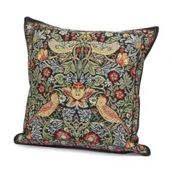 Jacquard woven cotton blend tapestry from Belgium on pillows made in England. Zippered covers have beige cotton velvet backs and remove for dry cleaning. American-made inserts are non-allergenic polyester fiber in cotton covers. Exclusively at Scully & Scully.