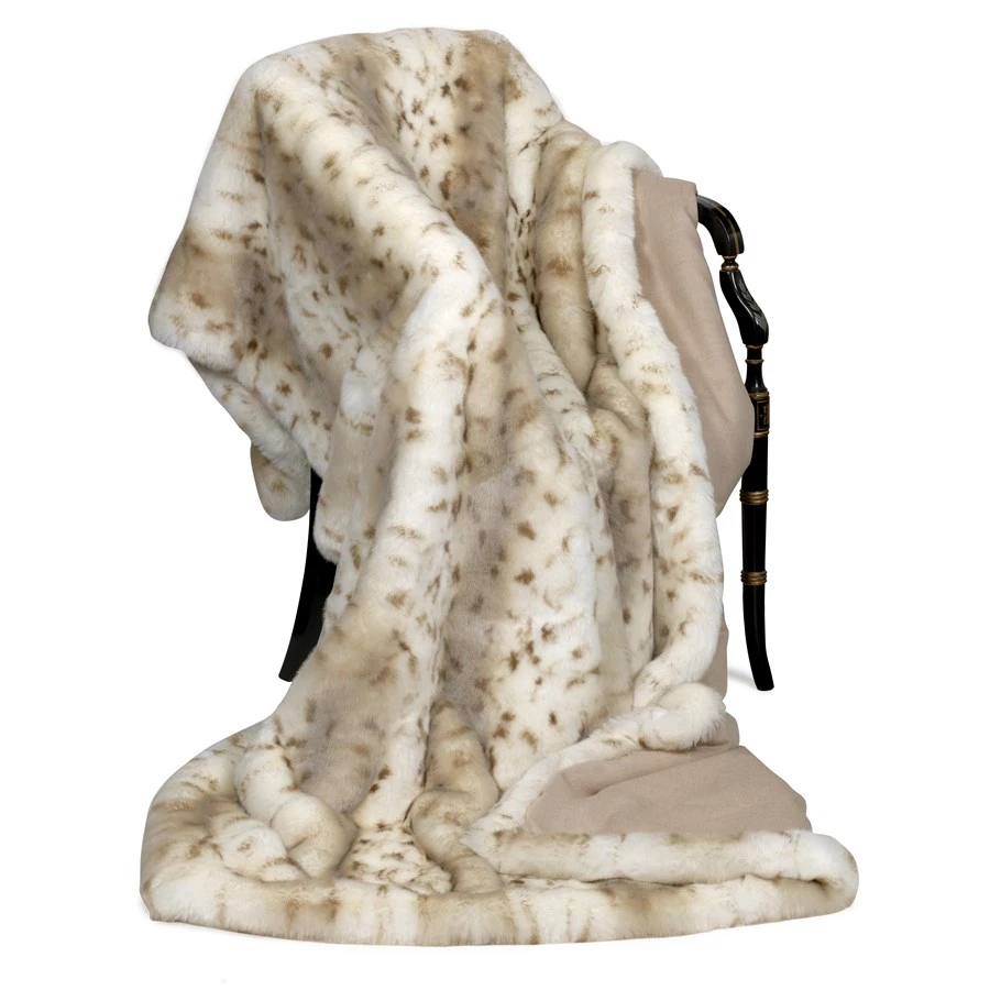 Luxurious and humane. Faux Lynx on one side, fine Australian geelong wool on the other. Can be dry cleaned – do not wash. Made in Germany. Exclusively at Scully & Scully.