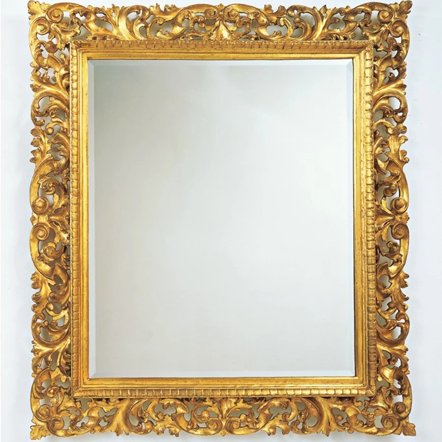 A beautiful surround of finely sculpted acanthus leaves celebrates the majesty of the Italian Renaissance. A beveled mirror and our antique gold leaf finish make it a classic. Made in America.