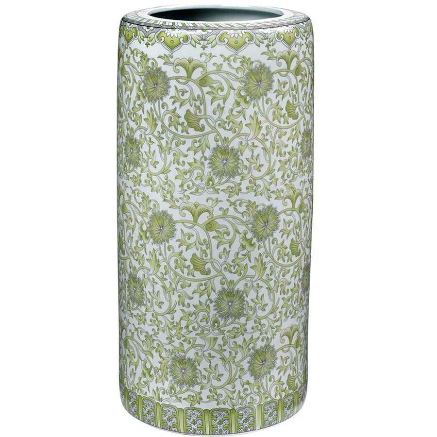 Beautifully handpainted in a lush and colorful floral design, this handmade porcelain umbrella stand is useful and a fine decorative accessory in your entryway.