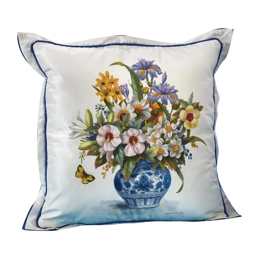 | Style | Handpainted Botanical Design Silk Pillow, Blue Vase with Butterfly, Handpainted Botanical Design Silk Pillow, Blue Vase with Dragonfly |