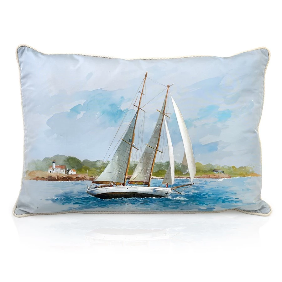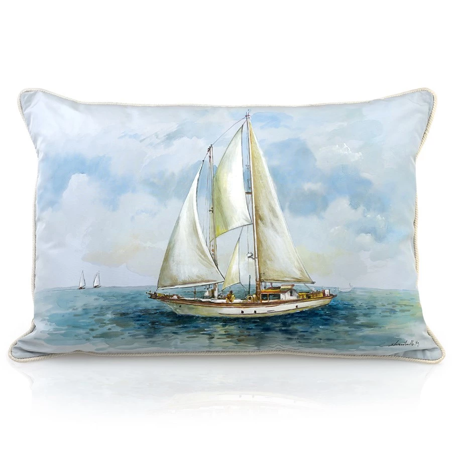 | Style | Handpainted Sailboat Silk Pillow, By Shore, Handpainted Sailboat Silk Pillow, At Sea |