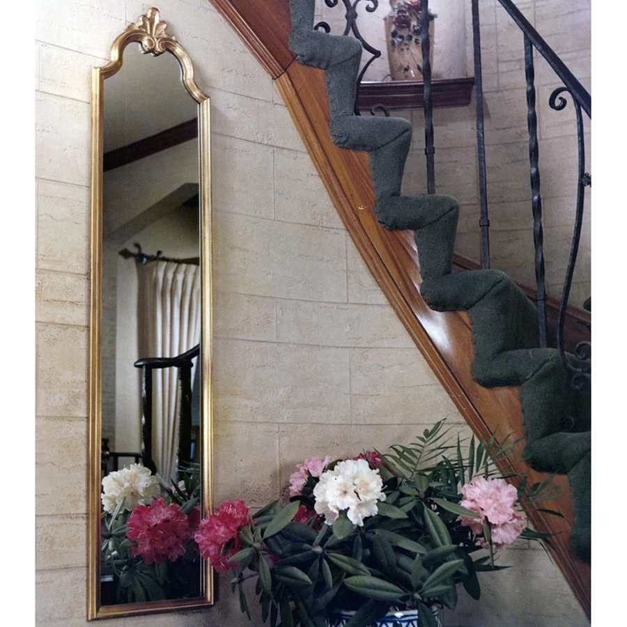 A narrow tall pier mirror with a scroll and acanthus leaf top the Lancer makes an excellent dressing mirror. Or use it in an area that is long and narrow. Made in America.