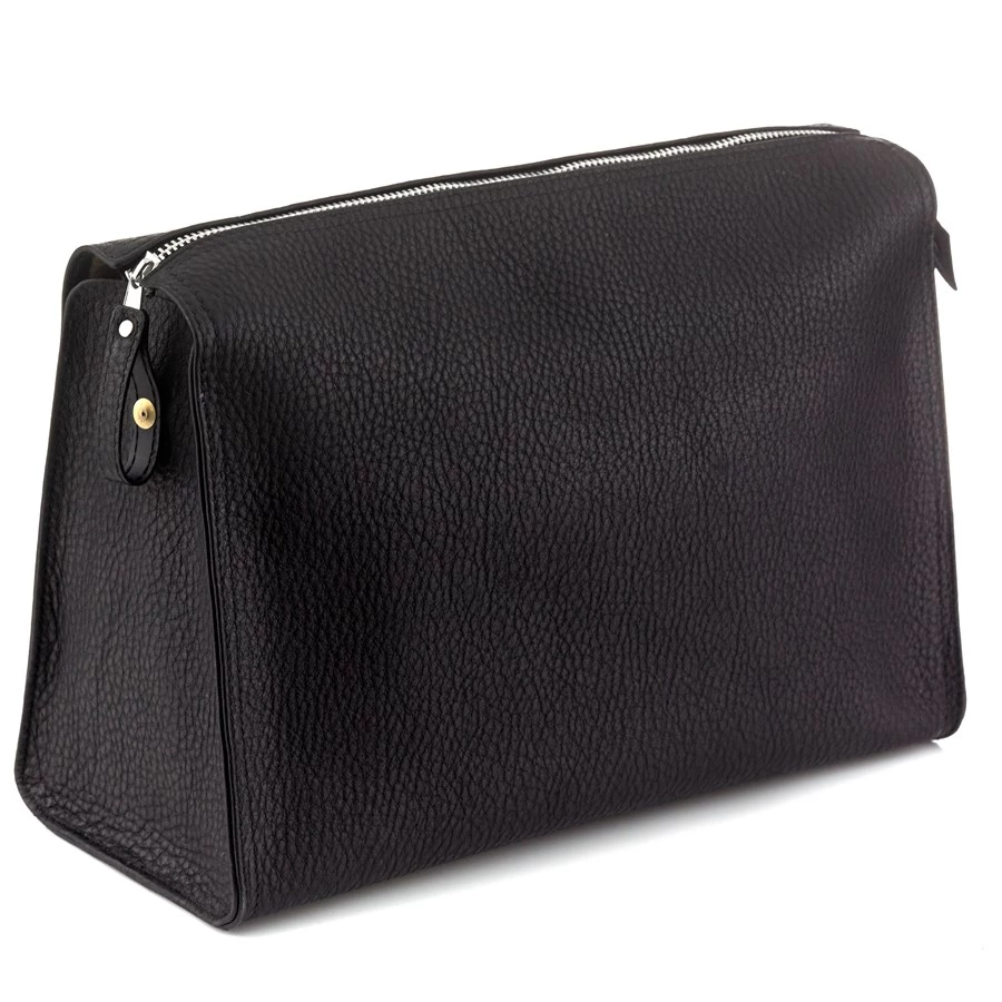 Naturally tanned calfskin toiletry bag comes in three aniline dyed colors. One large compartment with second built-in zippered compartment inside. Entirely handmade in Germany. Exclusively at Scully & Scully.