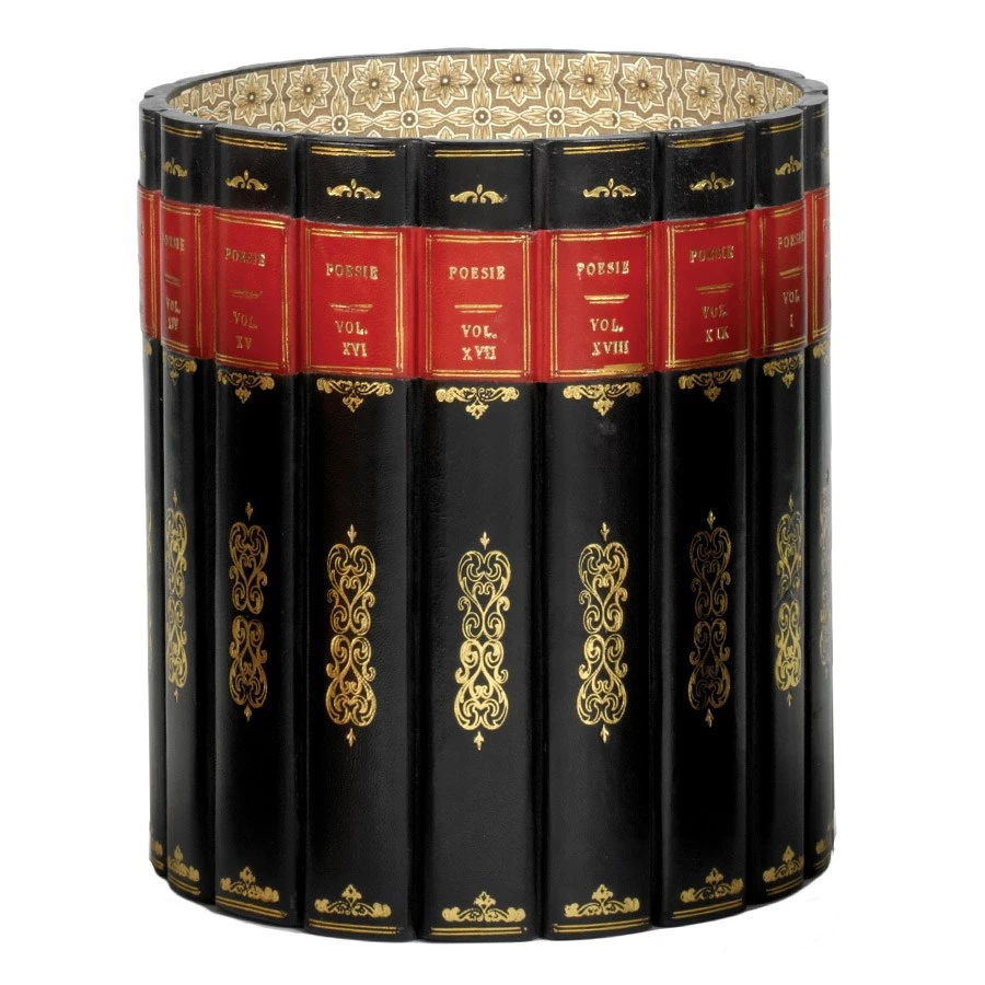 | Style | Round Books Wastebasket, Brown/Black, Round Books Wastebasket, Red/Gold, Round Books Wastebasket, Green/Red, Round Books Wastebasket Gold/Black, Round Books Wastebasket Black/Red, Round Books Wastebasket, Grey & Black |