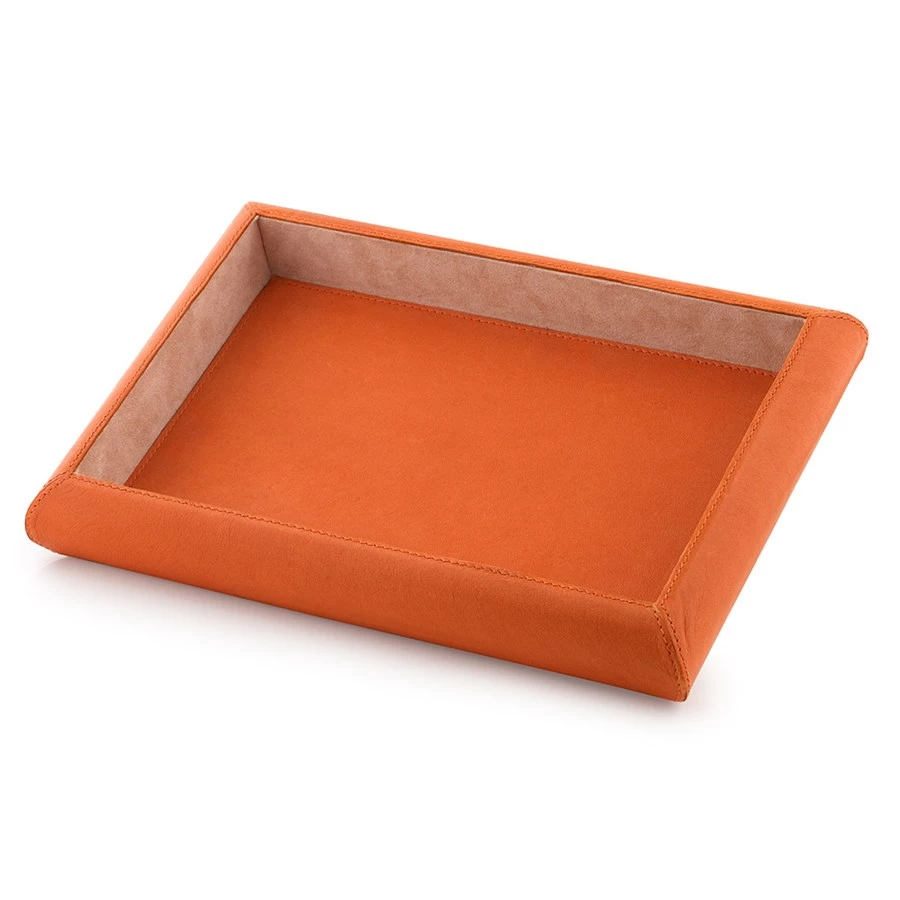 These charming trays are perfect for holding keys, wallets, stationery items, and more. The interior is lined with suede and handstitched at the borders. The outside is a richly dyed calfskin leather. Handmade in Spain. Exclusively at Scully & Scully.