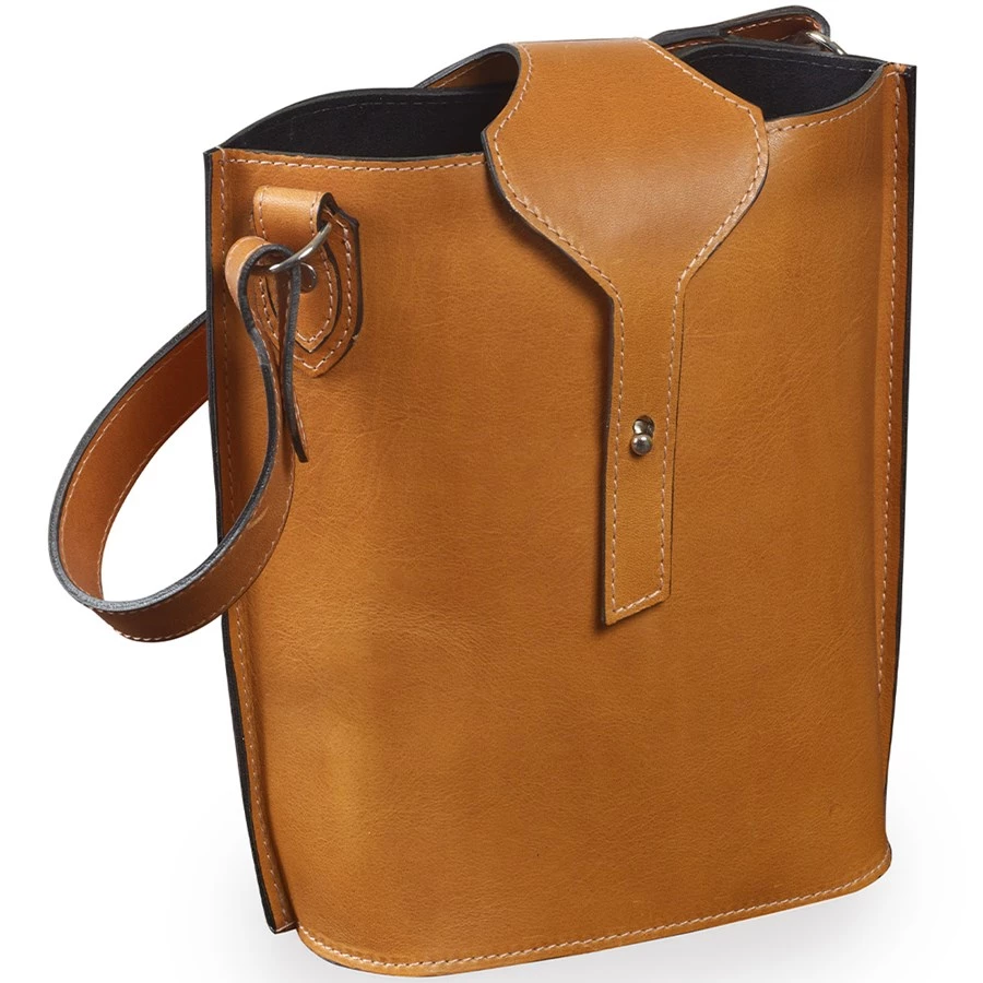 Entirely handmade in Germany of naturally tanned calfskin. Leather Wine Totes comfortably hold two wine bottles, secured by charming satchel style buckle. Tote includes a durable handstitched leather handle for ease of use. Exclusively at Scully & Scully.