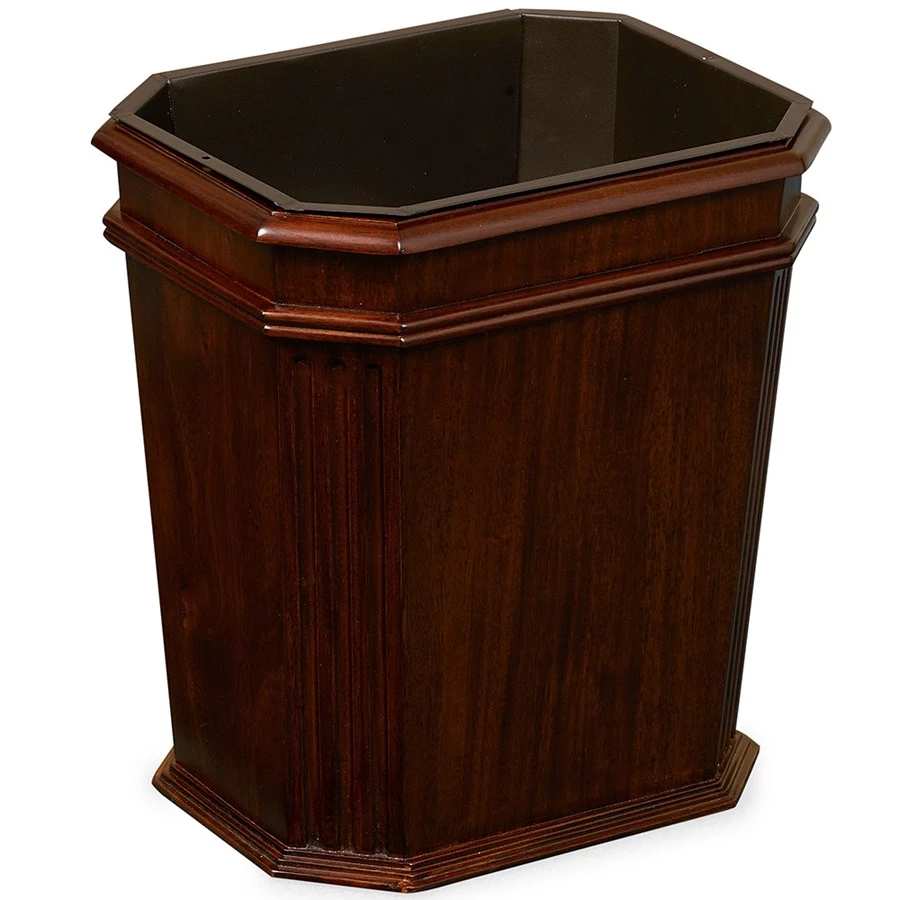 Crafted of eco-friendly plantation-grown mahogany, these elegant wastebaskets feature the Alur motif, with fluted angled corners. Designed to suit both traditional and contemporary decor with its understated style. Each wastebasket includes a removable metal liner. Commissioned by Scully & Scully and exclusively ours.