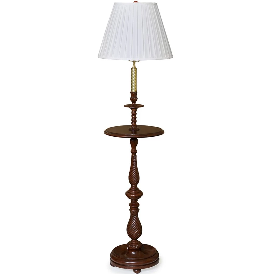 Based on a smoker’s lamp design circa 1860, this handmade floor lamp includes a mid-height 13″ diameter table. This pretty style is handcarved with varying swirls and turns and the base stands on three bunn feet. Exclusively at Scully & Scully.