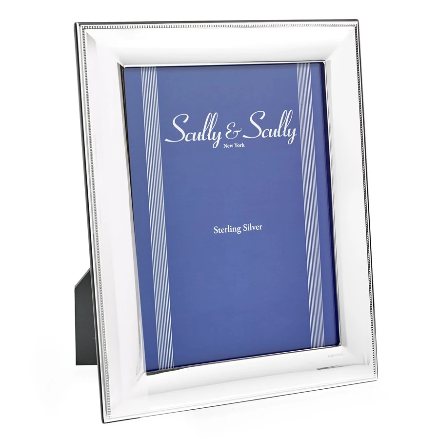 Hallmarked sterling silver frames with thin beaded accents, stylish black wood backs and two-way easels for support. Handmade in Sheffield, England. Exclusively at Scully & Scully. Personalize for the perfect gift. Each line of engraving is an additional $24. Please allow one week for engraving.