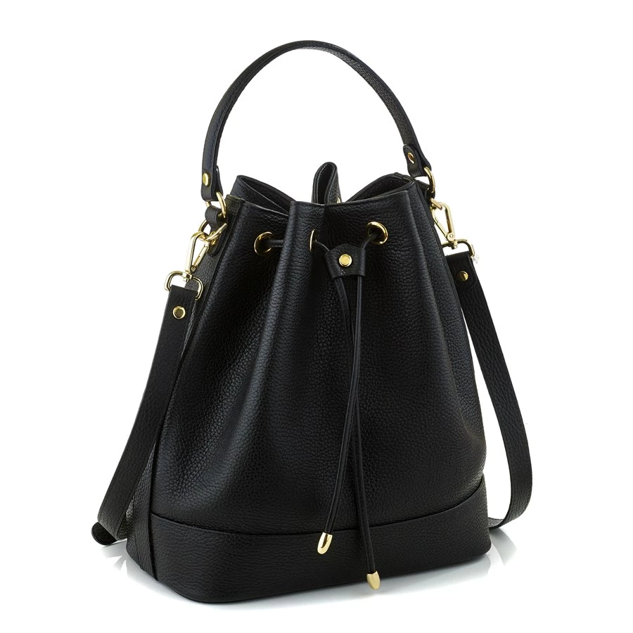 Soft yet durable leather bag with a scrunchy form and a pull string top, the solid colored Pamela bag comes with removable long strap and a sturdy short handle, in a variety of colors that work to display distinct personalities. One open and two zippered compartments inside back and middle. Handmade in Spain. Exclusively at Scully & Scully.