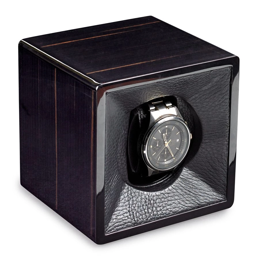 Keep your favorite automatic timepiece wound and up to date with this luxurious watch winder. Highly polished wood is lined with Italian leather. Battery operated. Handmade in Italy. Winder itself made in Switzerland.