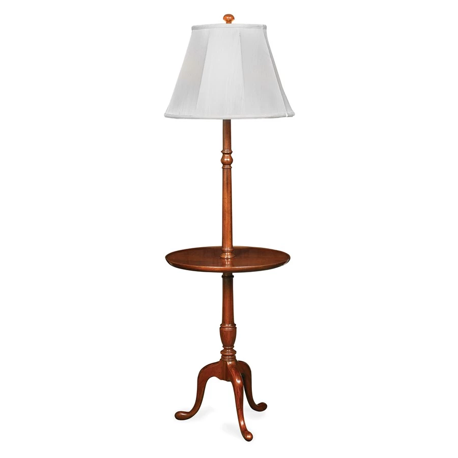 Classic Queen Anne table lamp is solid mahogany with handcarved Queen Anne legs and a handshaped round tray. Uses three-way bulb up to 150 watts.