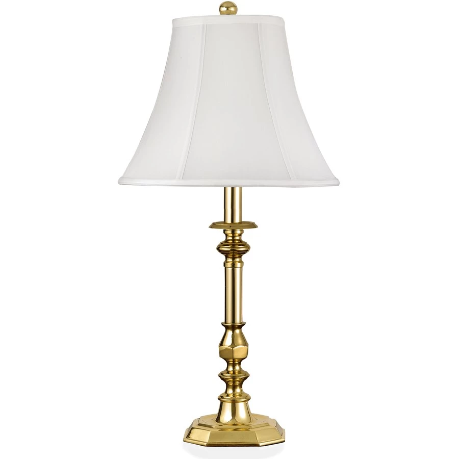 Crafted of solid cast brass, this faceted table lamp takes a three-way bulb up to 100-watts. On-off switch on socket. Lined, piped and trimmed fabric shade. Exclusively at Scully & Scully.