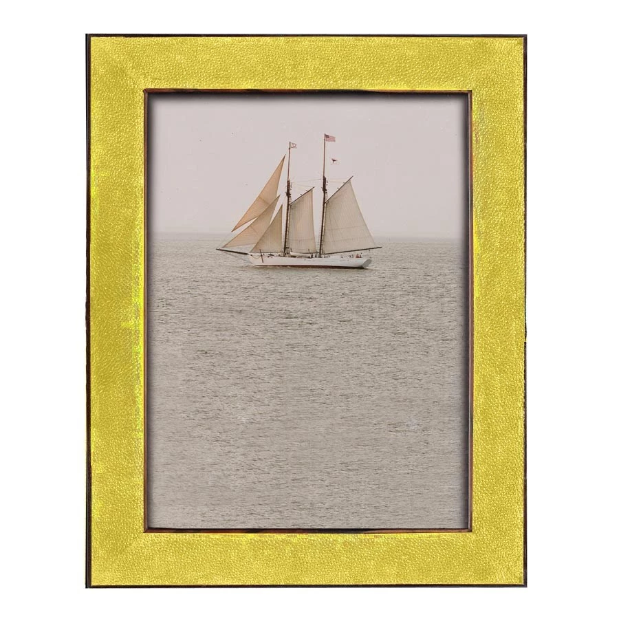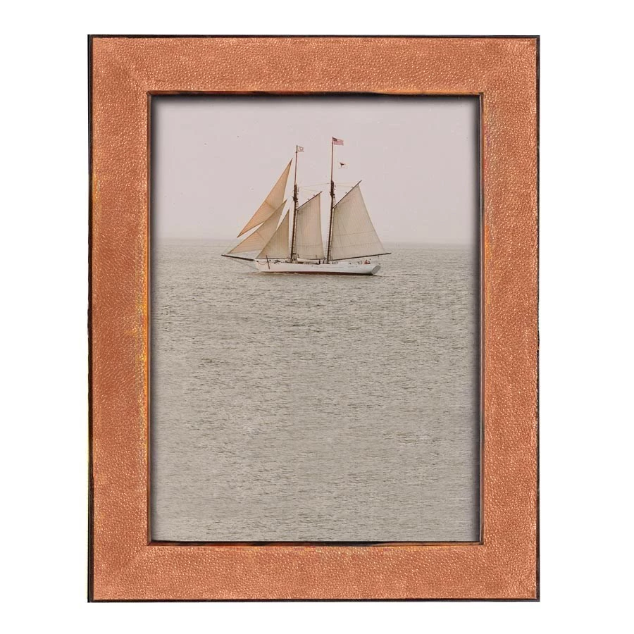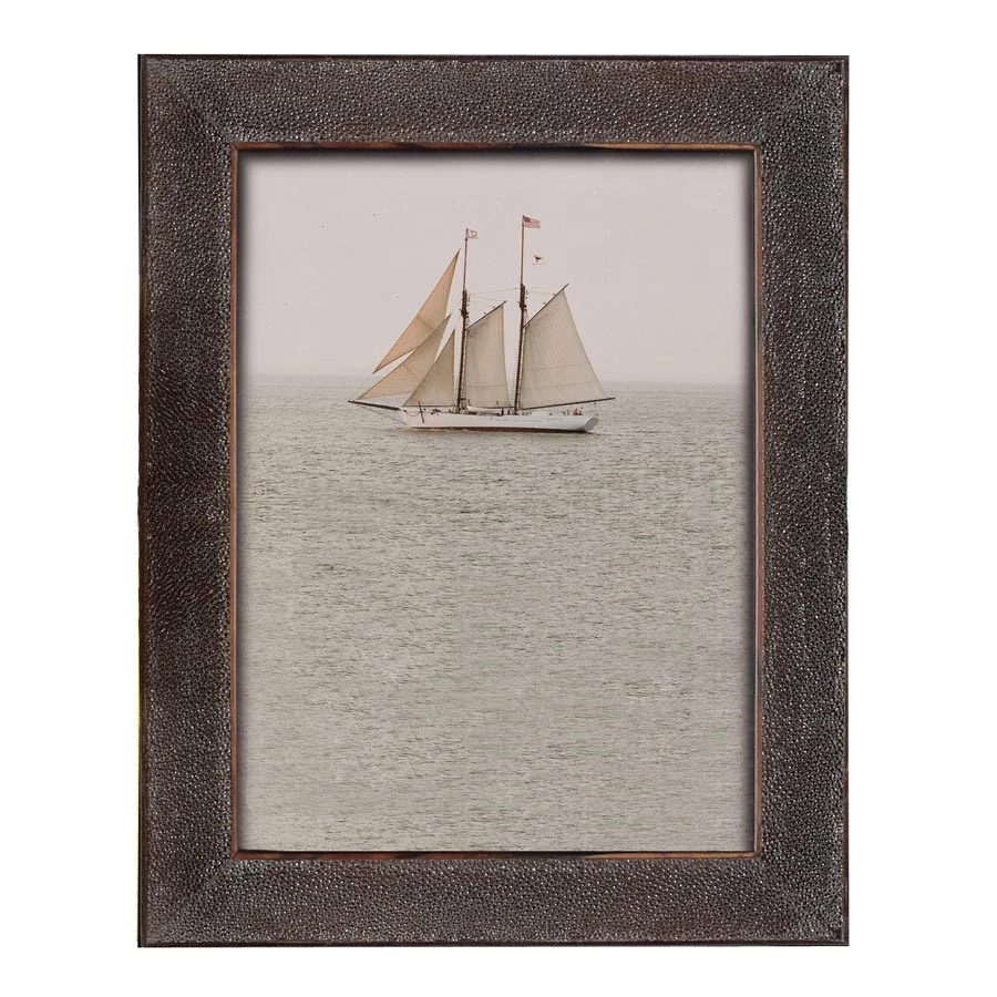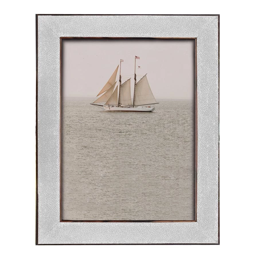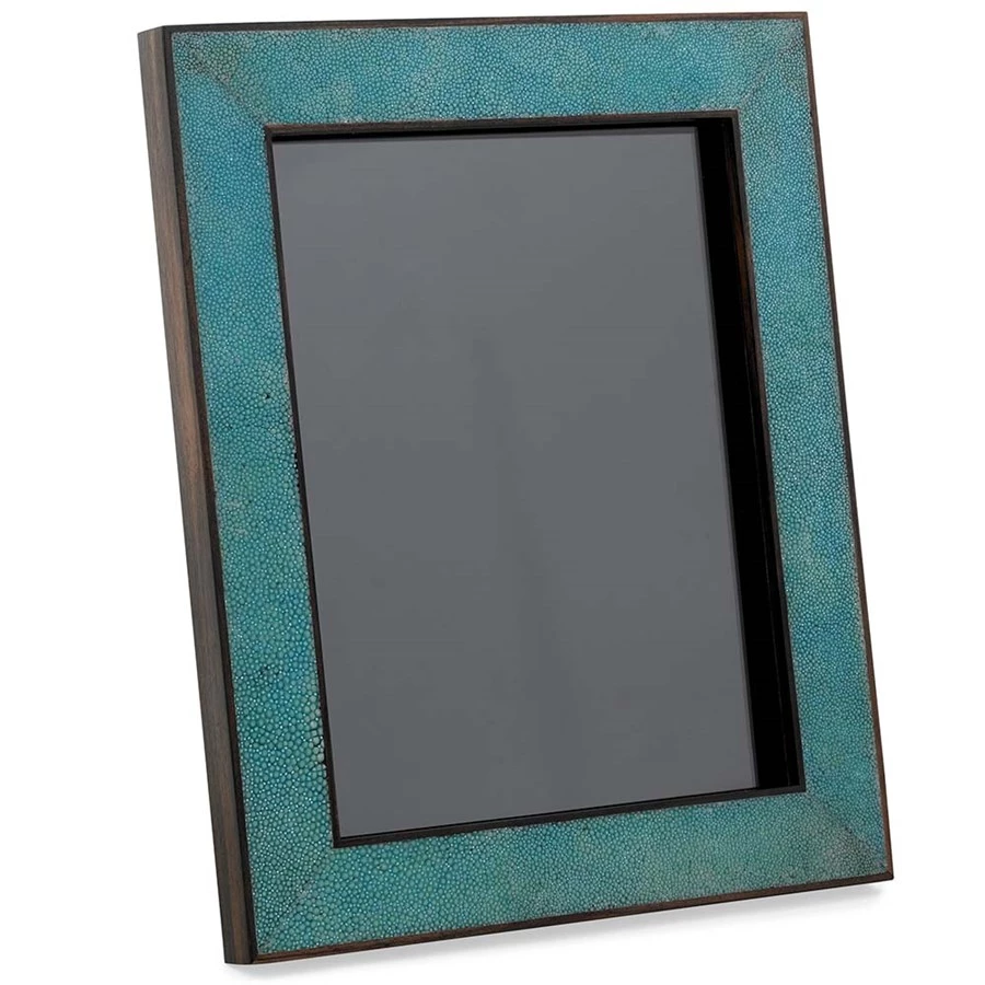 Eye-catching frames handcrafted from marine wood inlaid with richly colored shagreen, accented by ebony wood trim at the sides. The reverse is black suede with a Makory veneer. Two way easel stand. Exclusively at Scully & Scully.