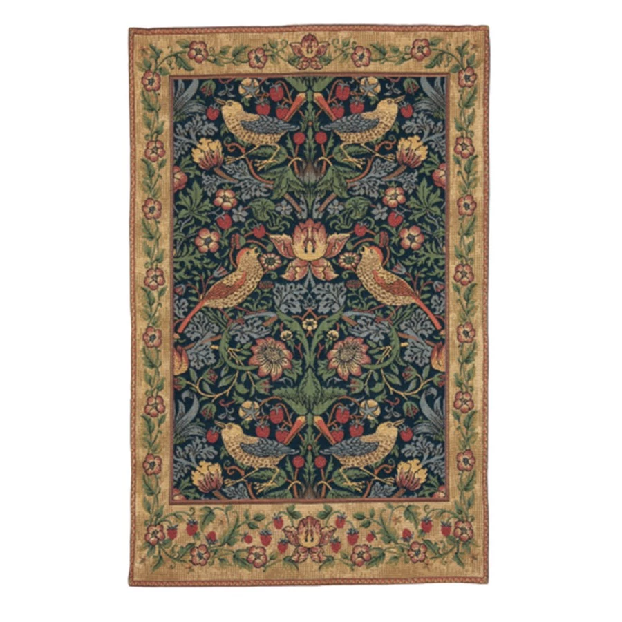 This design was produced by Morris & Co at Merton Abbey, Surrey, in 1883. The intricate design was created by William Morris, with the birds probably being drawn by Philip Webb. It was inspired by a real-life problem one that is familiar to many gardeners. In his garden at Kelmscott Manor, Morris tried to grow strawberries but found that these were always being eaten by greedy thrushes who managed to creep under the netting. Morris allowed them to do so enjoying their efforts to remove the strawberries. Recalling their attempts, he designed this remarkable furnishing textile pattern, taken directly from the natural world. The gentle humor in this pattern helped to make it one of Morriss’s most successful creations.
