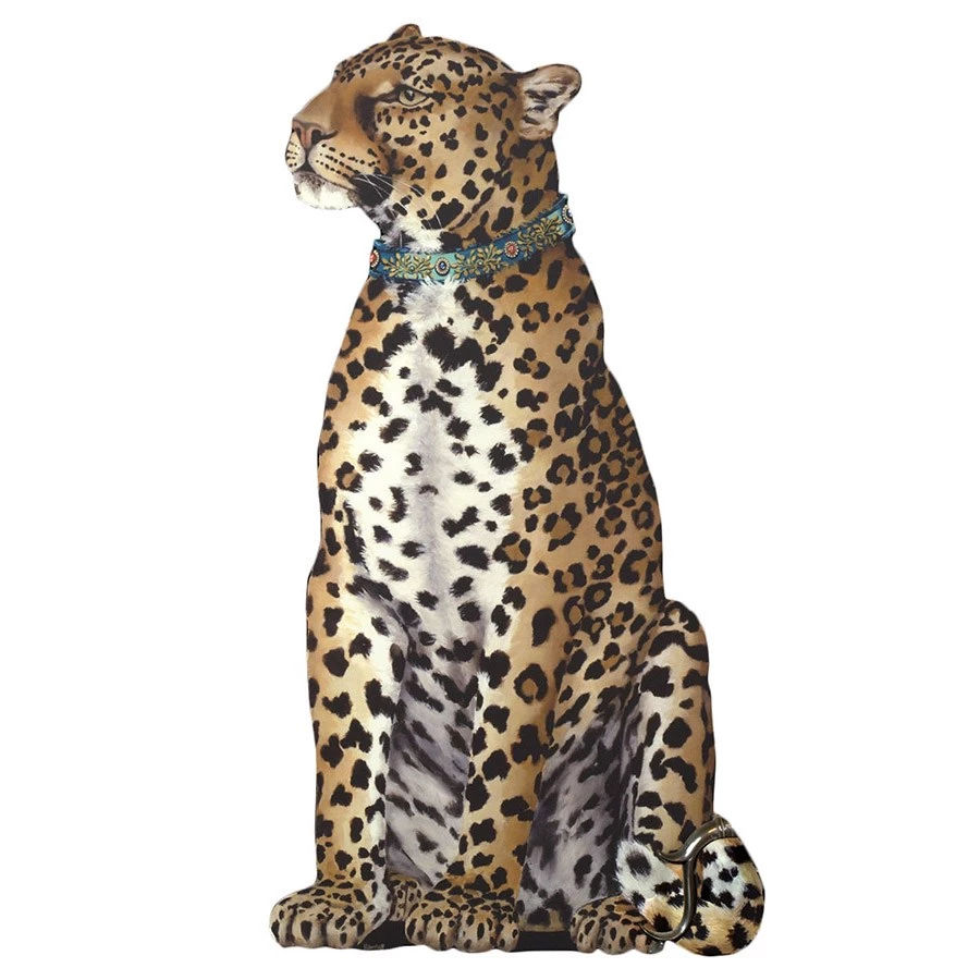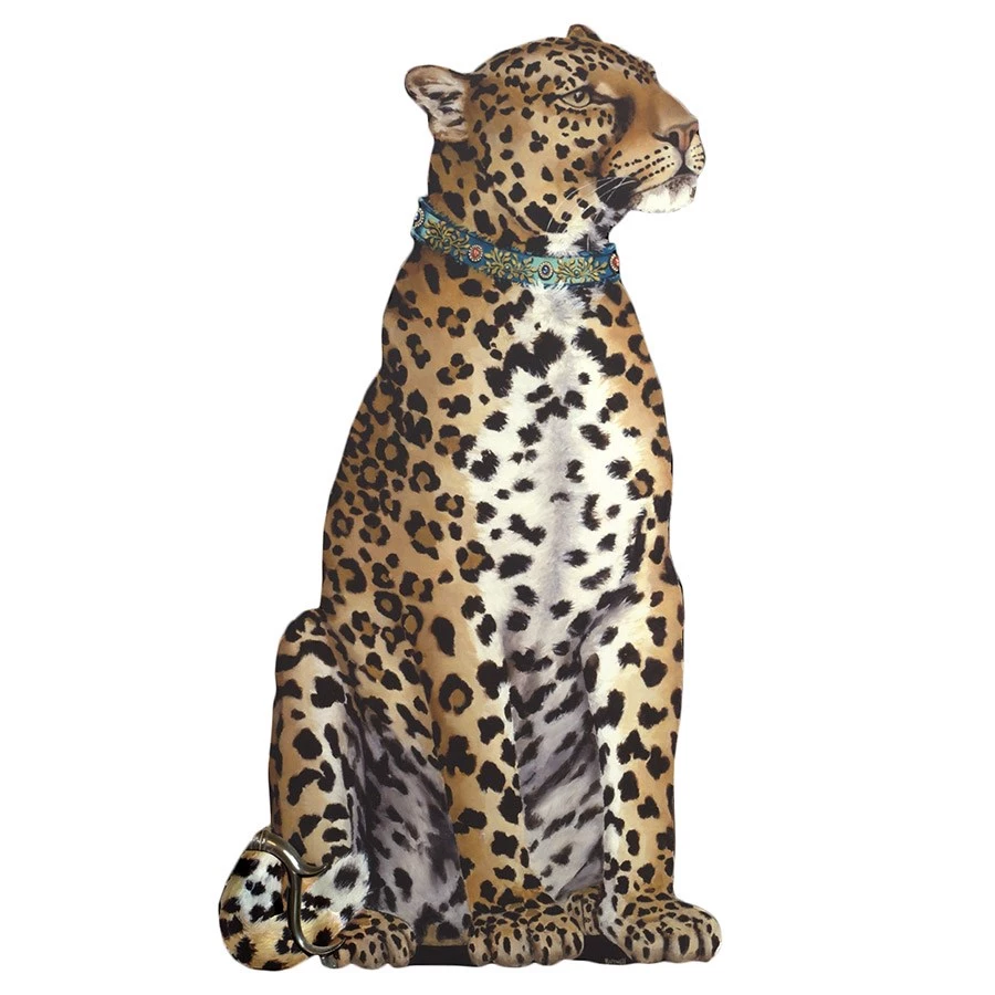 Wild and unexpected elegance in free-standing firescreen-style leopards in bejeweled collars printed in pigment varnished onto flat wood composite boards. Made in America. Exclusively at Scully & Scully.