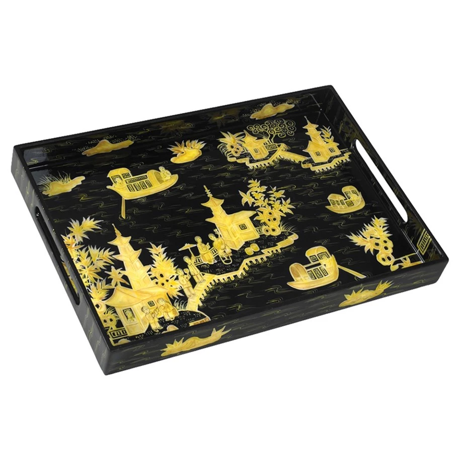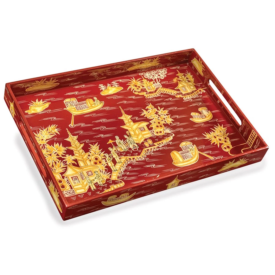 | Style | Xanadu Chinoiserie Lacquered Tray, Red, Xanadu Chinoiserie Lacquered Tray, Black |
