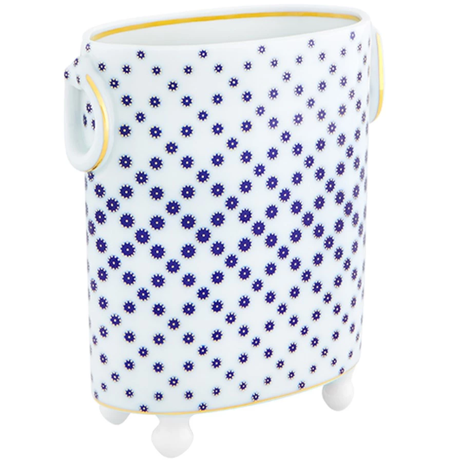 Constellation d’Or is a fabulous pattern from Vista Alegre, combining 18th century gold geometric techniques from Sèvres with a contemporary eye. Known as ‘pointillé d’or’ or ‘partridge eye’, the hand applied gold is combined with shades of blue fire blazing across this porcelain vase. Handmade in Portugal.
